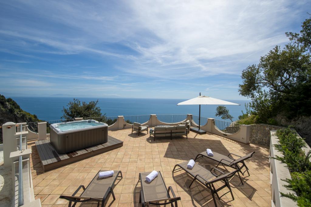 - Villa is perched cliffside above the Praiano La Praia Beach